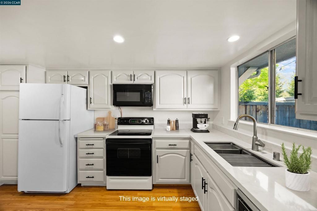 Experience the best value in Miramonte Gardens with this refreshed 2-bedroom, 1.5-bathroom townhome, recently updated in 2026 to be completely move-in ready. This home features extensive interior improvements, including the removal of popcorn ceilings, the addition of modern recessed lighting, new interior paint, new baseboards, and plush new carpeting. The functional floor plan offers a light-filled living space and a kitchen enhanced with professionally repainted cabinetry, a brand-new countertop, and a new sink. The property is designed for convenience and low-maintenance living, featuring indoor laundry, assigned parking, and a private fenced patio perfect for outdoor relaxation. Residents also enjoy access to the community pool within this well-managed association. The bathrooms have been updated with a new vanity and faucet, complemented by refreshed grout. Located in an exceptionally convenient area, this home is situated just 0.1 miles from the highly-rated Miramonte High School and is served by the Moraga Elementary School District. It is minutes away from local shopping, scenic trails, the Moraga Country Club, and Saint Marys College. With a recent deep cleaning and modern updates, this townhome represents a strategic opportunity to secure a refreshed home in one of Moraga's most desirable locations.
